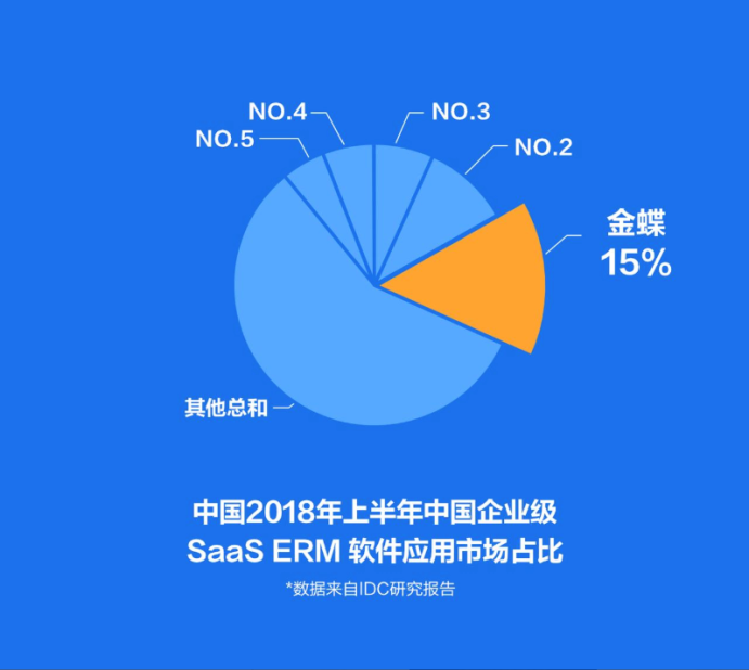 IDC 《中國(guó)半年度企業(yè)級(jí) S aaS ERM 應(yīng)用軟件市場(chǎng)跟蹤報(bào)告》,金蝶在2018上半年 SaaS ERM 和 SaaS 財(cái)務(wù) 云 市場(chǎng) 占比繼續(xù)蟬聯(lián)第一。