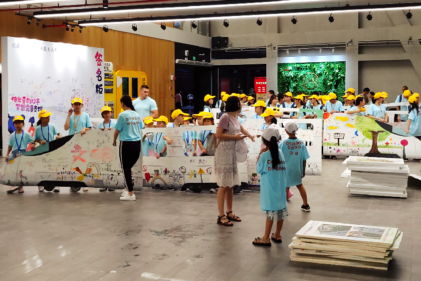 深圳新聞網(wǎng)2019年8月2日訊 兩列長達(dá)24米,車身由深圳百名兒童彩繪設(shè)計(jì)的小火車,帶著他們的夢(mèng)想,1日下午在深圳龍崗紅立方青少年館“開出”,開啟暑期文明生活之旅。