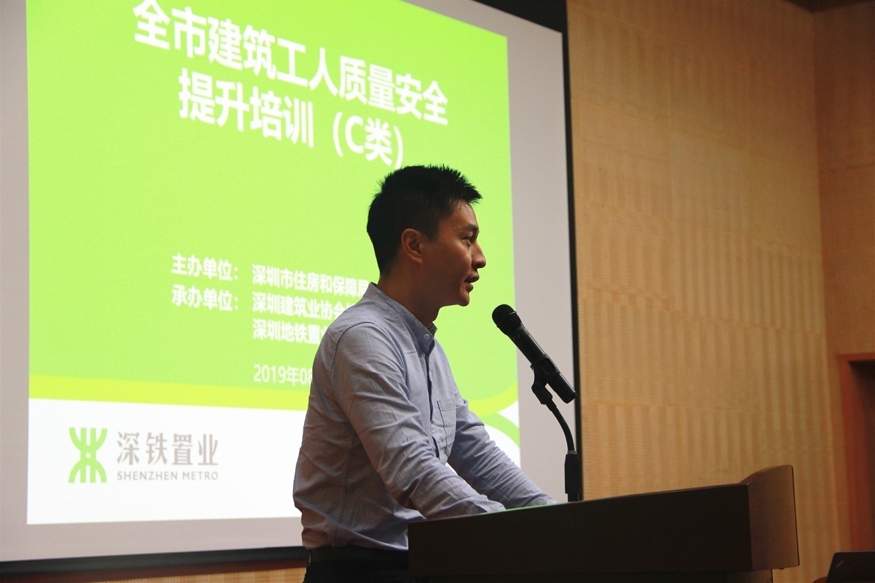 深圳市住房和建設(shè)局建筑市場和招標(biāo)投標(biāo)監(jiān)管處副處長董亮首先對一線工人表示親切的慰問,并對深圳地鐵置業(yè)集團(tuán)積極響應(yīng)政府號召,扎實(shí)落實(shí)工人安全質(zhì)量培訓(xùn)工作表示肯定。本次培訓(xùn)是市住建局建筑工人質(zhì)量安全培訓(xùn)提升工作方案的重要組成部分,接下來將在全市全面推行A、B、C、D、E五類培訓(xùn)。由政府、企業(yè)、協(xié)會、培訓(xùn)機(jī)構(gòu)四方力量共同攜手推進(jìn)崗前崗后、場內(nèi)場外、線上線下培訓(xùn)教育工作。今后,未經(jīng)過系統(tǒng)教育培訓(xùn)的工人將禁止進(jìn)入深圳市建筑市場。