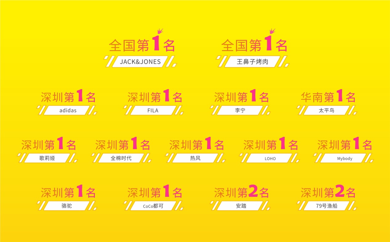 開業(yè)期間,壹方天地B區(qū)與已開業(yè)的A區(qū)、E區(qū)聯(lián)動,舉辦了一系列活動,獲得開業(yè)活動三天客流量突破69.3萬人次,銷售額超5000萬的佳績。開業(yè)期間,品牌商戶的經(jīng)營業(yè)績也極為亮眼,NIKE、WESTLINK、YISHION、SANFU、79號漁船等多個(gè)品牌銷售額位居深圳乃至全國前列。其中,adidas、FILA、李寧、太平鳥、歌莉婭、全棉時(shí)代、熱風(fēng)等品牌勇奪深圳第一,JACK&JONES和王鼻子烤肉更是獲得全國第一的好成績。