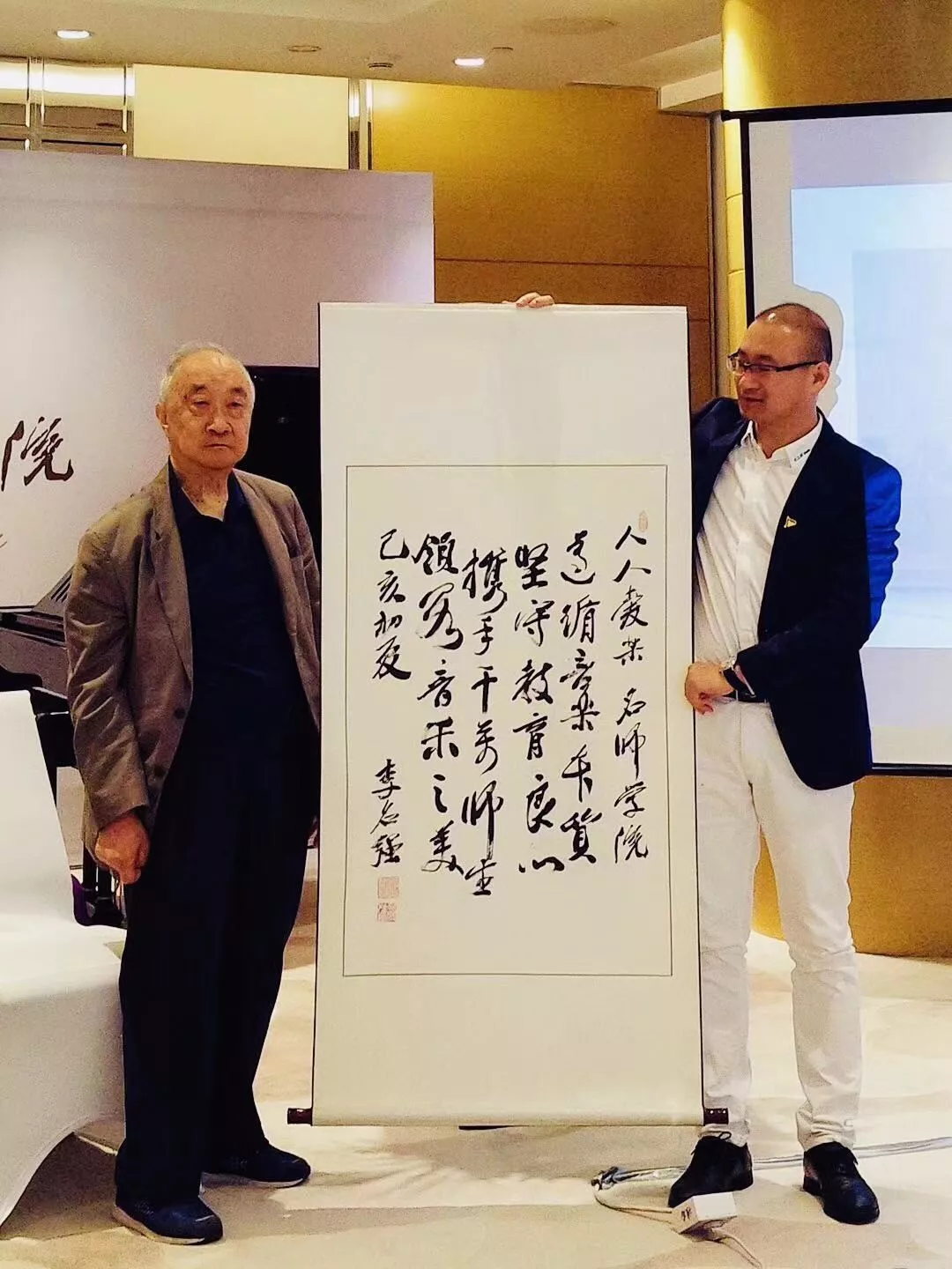 與會(huì)當(dāng)日,國(guó)際著名鋼琴家李名強(qiáng)教授、著名鋼琴家楊韻琳教授、中國(guó)音樂學(xué)院鋼琴系前主任張維教授、奧地利著名鋼琴家赫墨慈貝爾格教授等悉數(shù)出席,各位業(yè)界大咖發(fā)表了熱情洋溢的致辭,李明強(qiáng)教授還特意為本次活動(dòng)獻(xiàn)上個(gè)人墨寶,恭?!叭巳藧蹣贰っ麕煂W(xué)院”的啟幕。