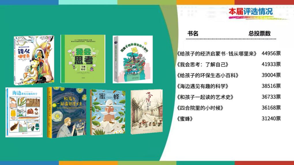 歷時300天,39家圖書館全員出動、國內(nèi)312所學校參與,總計選票1,309,111張,最終30本童書脫穎而出,入圍2019華潤怡寶杯“我最喜愛的童書”提名,其中9本童書分獲兒童文學、圖畫書、知識性讀物三大類別金銀銅獎。