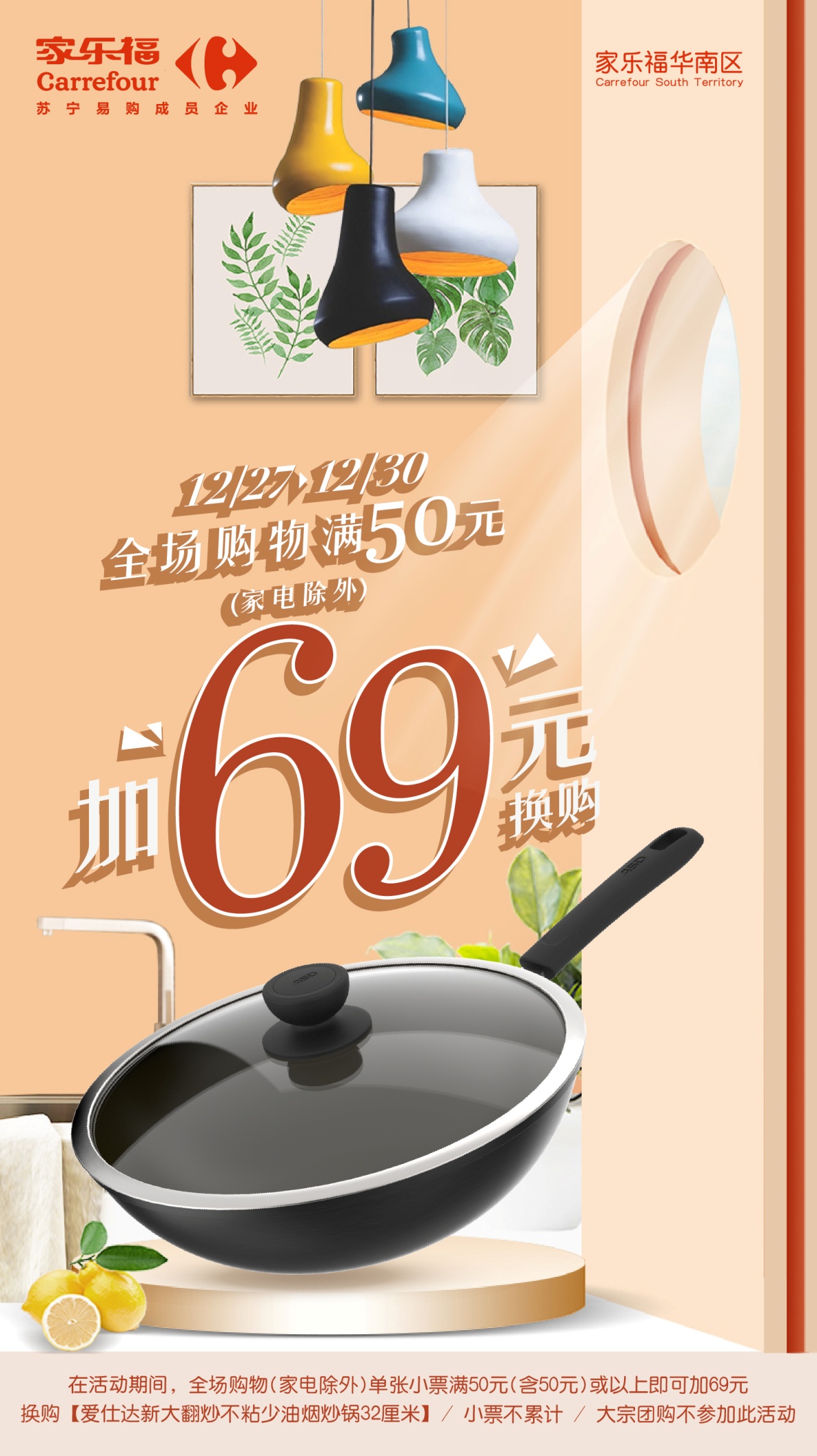 最后播報(bào)一則“筍盤(pán)”信息。12月27日至30日,顧客在家樂(lè)福華南區(qū)門(mén)店全場(chǎng)購(gòu)物滿(mǎn)50元,還可加69元換購(gòu)愛(ài)仕達(dá)新大翻炒不粘少油煙炒鍋32厘米(家電、大宗團(tuán)購(gòu)除外,小票不累計(jì))。