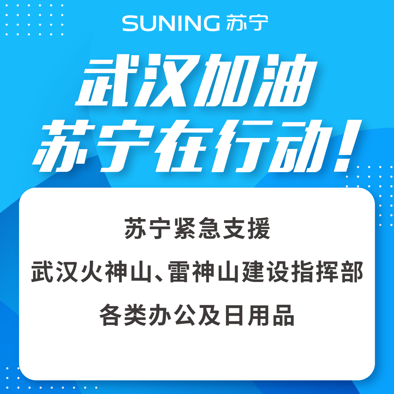 而在疫情防控一線,自春節(jié)期間肺炎疫情發(fā)酵以來,蘇寧迅速行動,在武漢組建了支援團(tuán)隊及時響應(yīng)一線需求,通過定向向武漢火神山、雷神山醫(yī)院,以及武漢和周邊地區(qū)的醫(yī)療、公安等機(jī)構(gòu)進(jìn)行捐贈,緊急支援消毒水、口罩、防護(hù)服、醫(yī)用手套、電器、電腦、日用品等一系列物資,以解疫區(qū)燃眉之急。