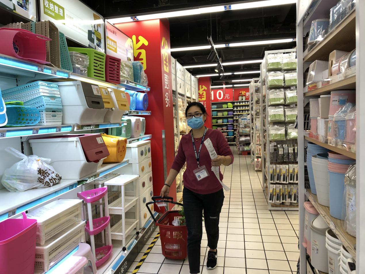“現(xiàn)在手上這個(gè)單有24個(gè)商品需要揀貨,這還不算大單,我們有接到過(guò)一單上百個(gè)商品的,還有總價(jià)超過(guò)3000元的訂單呢。家樂福梅林店的賣場(chǎng)面積大概是5000平方米,每天上下2層樓跑多少趟具體倒是沒有統(tǒng)計(jì)過(guò),但像現(xiàn)在特殊時(shí)期,我們一天在網(wǎng)上接到的‘配送到家’服務(wù)訂單基本都要超過(guò)800單,有時(shí)候會(huì)到1000單?!?/p>