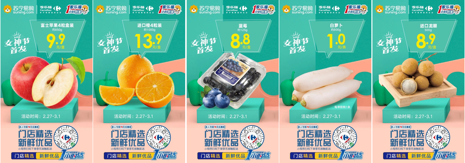此時此刻,提高自身免疫力才是關鍵。蔬果家族可以說是生鮮里的寶藏品類了。2月27日至3月1日,多款維生素滿滿的健康蔬果,驚爆價低至1元!富士蘋果4粒裝9.9元/盒、進口橙四粒裝13.9元/盒、藍莓8.8元/盒、白蘿卜1元/條、進口龍眼8.9元/盒。