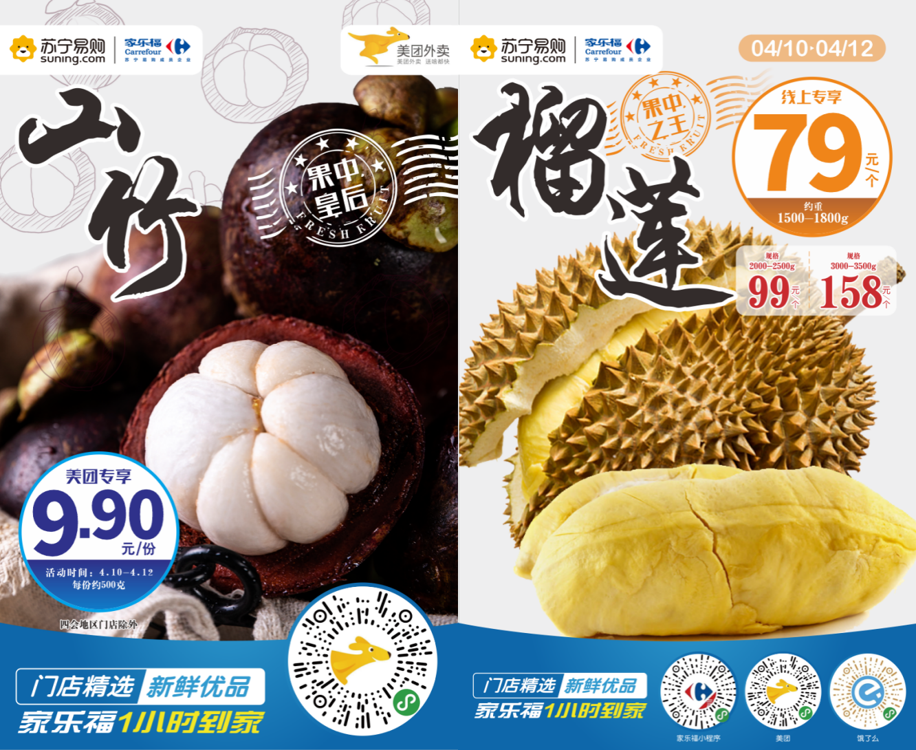 此外,周末還有另外兩款生鮮爆品必須安利給小伙伴!4月10日至12日,9.9元/份的山竹搭配79元/個的榴蓮,華南市民再也不怕大補上火了呢!特別注意的是,優(yōu)惠僅供家樂福線上專享,“碼”上安排?。▍瞧G 通訊員蔡民婷)