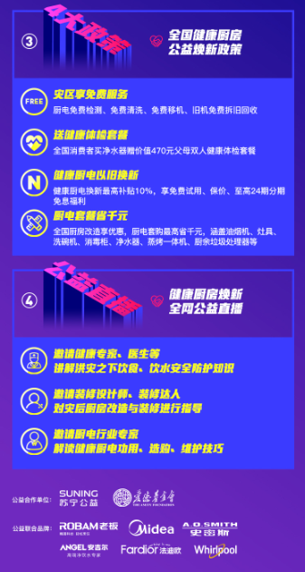 與此同時(shí),洪水致使大批廚房電器受損,疊加高溫天氣,災(zāi)民飲食安全面臨考驗(yàn)。蘇寧易購特別捐贈(zèng)50套健康廚電,涵蓋油煙機(jī)、灶具、消毒柜等必備廚房電器,讓災(zāi)民更快恢復(fù)健康生活。同時(shí),廚房作為“病從口入”最關(guān)鍵的環(huán)節(jié),洗菜、水質(zhì)凈化、烹飪除油煙、餐具清潔消毒、廚余垃圾處理等每一環(huán)都不容忽視,蘇寧易購特別倡導(dǎo)“健康廚房7步驟”,全流程打造健康廚房,并借助蘇寧易購雙線渠道全面開展科普活動(dòng)。