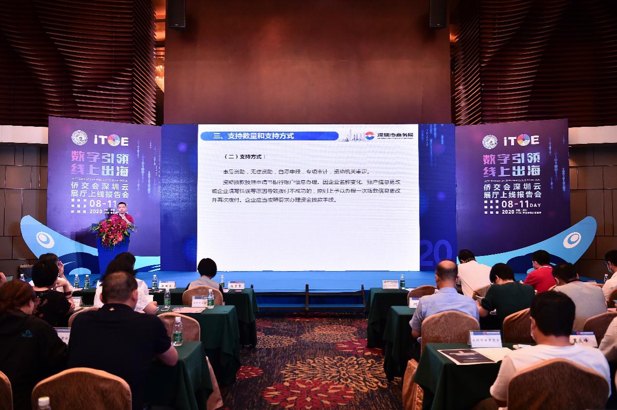 見圳客戶端·深圳新聞網(wǎng)2020年8月12日訊(記者 張俊達)昨天,“數(shù)字引領?線上出?!眱S交會深圳云展廳上線報告會在深圳綠景酒店三樓會議廳成功召開。以"數(shù)字引領?線上出海,提升企業(yè)國際競爭力"為主題,本次報告會重點展示“ITOE僑交會深圳云展廳”創(chuàng)新會展模式、解讀疫情之下外貿(mào)中小企業(yè)如何通過數(shù)字化轉型,并帶來2020年度最新中央外經(jīng)貿(mào)發(fā)展專項資金政策宣講。深圳多個商會、行業(yè)協(xié)會,以及僑企、港企、深圳外向型企業(yè)、展覽公司近200名代表參加報告會。