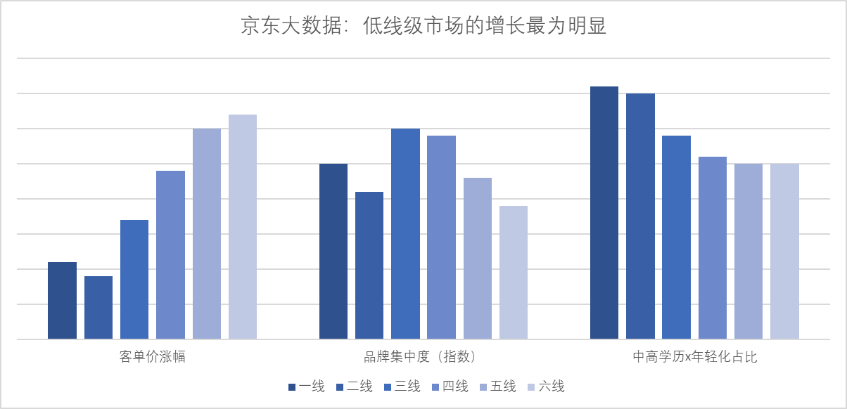 京東大數(shù)據(jù)從“客單價漲幅、品牌集中度、高學(xué)歷及年輕人占比”等指標(biāo)對1 -6線消費者的月餅購買數(shù)據(jù)進(jìn)行分析發(fā)現(xiàn),京東月餅消費者大學(xué)及以上學(xué)歷占比70%;90后用戶占比65%;中高消費水平用戶占比98%;此外需要注意到中低線市場“小鎮(zhèn)”中等收入人群的崛起,這些年輕化、高學(xué)歷、懂品味的人群正在引導(dǎo)整體消費市場從追求性價比到品牌、品味等更高追求的轉(zhuǎn)變。
