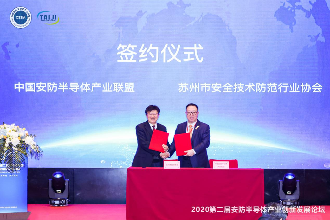 中國(guó)安防半導(dǎo)體產(chǎn)業(yè)聯(lián)盟主席楊金才和蘇州市安全技術(shù)防范行業(yè)協(xié)會(huì)秘書長(zhǎng)王坤泉現(xiàn)場(chǎng)進(jìn)行簽約