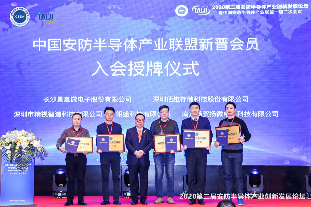 會(huì)議尾聲,還舉行了中國(guó)安防半導(dǎo)體產(chǎn)業(yè)聯(lián)盟新晉會(huì)員單位入會(huì)授牌儀式。深圳佰維存儲(chǔ)科技股份有限公司、長(zhǎng)沙景嘉微電子股份有限公司榮膺聯(lián)盟理事單位,瓴盛科技有限公司、深圳市精視智造科技有限公司,南京揚(yáng)賀揚(yáng)微電子科技有限公司榮膺聯(lián)盟會(huì)員單位。中國(guó)安防半導(dǎo)體產(chǎn)業(yè)聯(lián)盟主席楊金才為以上單位進(jìn)行授牌。