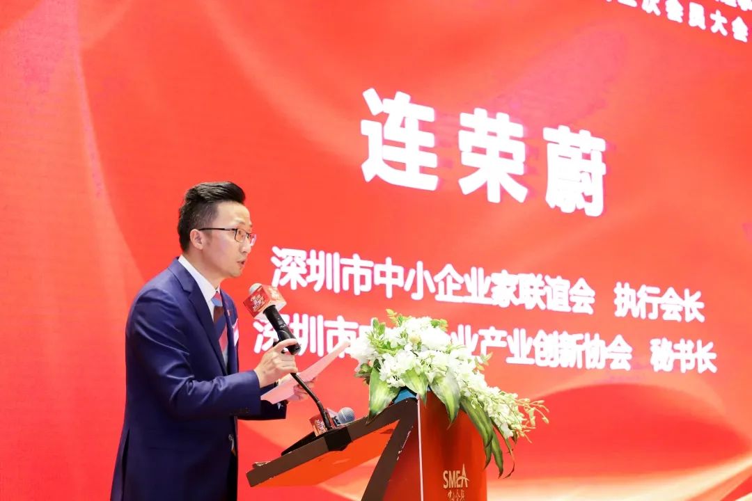 深圳市中小企業(yè)家聯(lián)誼會會長、深圳市杰科電子有限公司董事長黃榮添在致辭中首先對長期以來給予協(xié)會支持的各級領導、會員們表示衷心的感謝。深圳市中小企業(yè)家聯(lián)誼會自2010年9月20日成立以來,在市各級領導的指導和關(guān)懷下,已走過十年的歲月。深圳中小企聯(lián)感恩領導們的幫助與指導,也感恩全體會員的信任與支持!黃會長表示:深圳中小企聯(lián)要緊跟時代步伐,認清當前形勢與任務并對協(xié)會工作提出以下幾方面要求:第一、找準定位,正確履行協(xié)會職能。第二、充分發(fā)揮政企溝通的橋梁紐帶作用。第三、加強內(nèi)外資源有效聯(lián)接,擴大中小企聯(lián)平臺影響力。