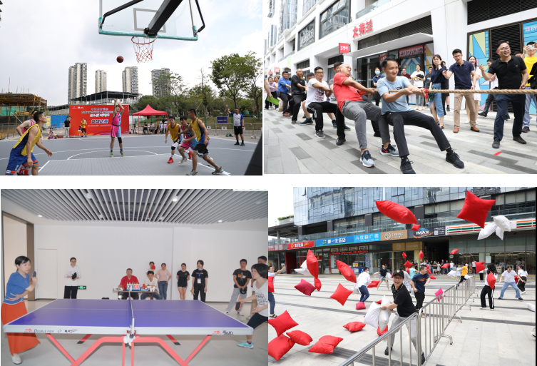 天安運營團隊陣容強大,在趣味運動和拔河項目上表現(xiàn)不俗。新增的籃球項目也成為本屆運動會的一大看點,在對抗性和觀賞性上頻頻把整場運動會帶入沸點時刻,最終天安數(shù)碼城新城團隊斬獲籃球賽事冠軍。