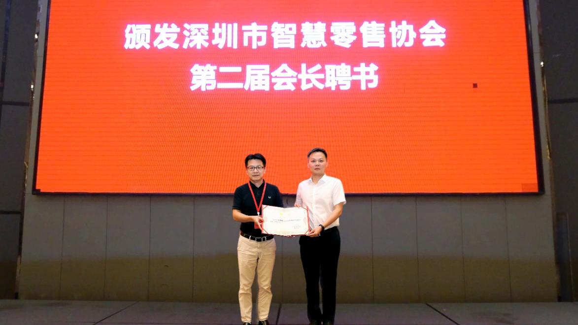 同期,深圳市智慧零售協(xié)會,在此舉行四年一度的換屆選舉大會。經(jīng)過無記名差額投票選舉,天虹數(shù)科商業(yè)股份有限公司董事長高書林連任深圳市智慧零售協(xié)會會長,由深圳市對口支援新疆工作前方指揮部副總指揮、深圳市商務(wù)局副局長管耀華為其頒發(fā)聘書。