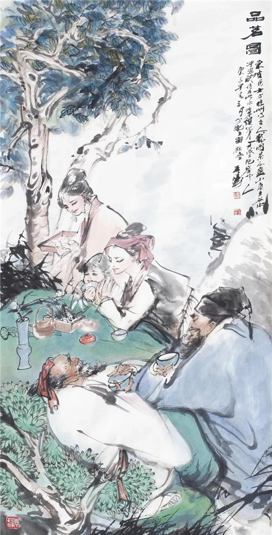 展品:王濤《品茗圖》137cm x 70cm紙本水墨2020年
