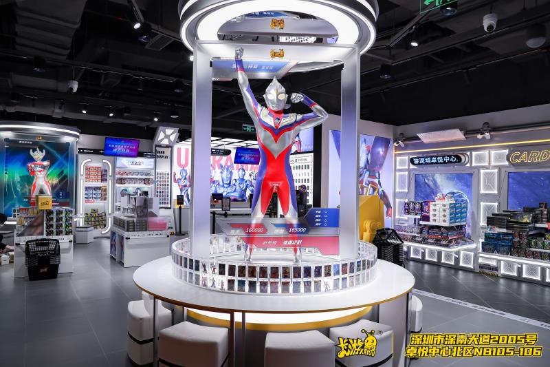 卡游動漫一貫以來打造親子互動體驗(yàn)的愿景,在“趣發(fā)現(xiàn)、去成就”的道路上始終前進(jìn),不斷為每一個卡牌愛好者和親子家庭帶來更多的歡樂、營造更多的幸福和構(gòu)筑更多的溫暖。作為城市首家線下直營店的卡游北京富力廣場店和卡游深圳卓悅中心店就是典型代表,他們不僅完美繼承了如“奧特曼1:1等身立像圓桌”和“英雄對決專區(qū)”等興趣社交區(qū)域,還配合商場“新時尚、新生活、新主張”的理念,在多種玩法的加持下,將藝術(shù)、美學(xué)、生活融于一體,擁有無限的探索可能。