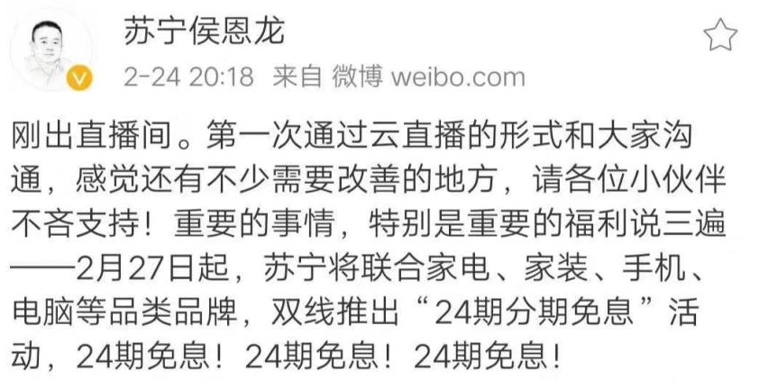 2月27日0點,蘇寧易購家電、家裝、3C等品類,開啟24期分期免息活動。截至12時,銷售額同比增長達710%。