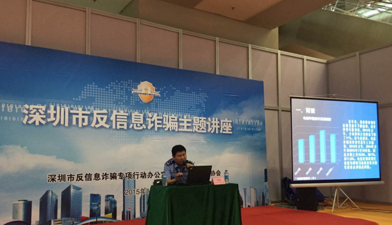 “針對(duì)信息詐騙犯罪高發(fā)的態(tài)勢(shì),今年8月1日,我市開展以深圳市政法委書記李華楠同志為領(lǐng)導(dǎo)小組組長(zhǎng)的反信息詐騙犯罪專項(xiàng)行動(dòng),為期半年。此次專項(xiàng)行動(dòng)主要集中公安、銀行、通信、工商、網(wǎng)絡(luò)企業(yè)等專業(yè)力量共同打擊信息詐騙犯罪。經(jīng)過(guò)合成打擊、宣傳防范、警信警銀合作、對(duì)策研究等多個(gè)方面的工作,8月1日至10月25日,全市共立信息詐騙案件環(huán)比下降了13.9%;破信息詐騙案件280宗,環(huán)比260宗上升了7.7%;逮捕涉信息詐騙犯罪嫌疑人190人,環(huán)比149人上升了27.5%;打掉涉信息詐騙犯罪團(tuán)伙19個(gè),環(huán)比19個(gè)持平;凍結(jié)涉案賬戶203個(gè),資金3089.9萬(wàn)元?!鄙钲谑泄簿中虃删执箨?duì)長(zhǎng)朱海在講座上分享道。
