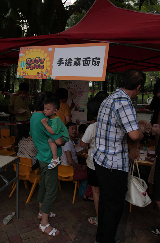 而在所有體驗(yàn)項(xiàng)目中,扇子彩繪成為人氣最旺的一個(gè)體驗(yàn)項(xiàng)目。從活動開始,一波又一波的小朋友涌進(jìn)扇子彩繪體驗(yàn)區(qū)。有的家長和孩子齊上陣,挑選好自己喜歡的扇面后,就在深圳國子監(jiān)文化傳播有限公司的專業(yè)老師指導(dǎo)下開始精心創(chuàng)作,充滿童趣的卡通畫、意境悠遠(yuǎn)的山水畫、栩栩如生的工筆畫,每一幅作品都引來眾多的圍觀贊嘆。
