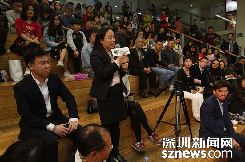 深圳銀監(jiān)局副局長欒鋒(左)在講解金融知識