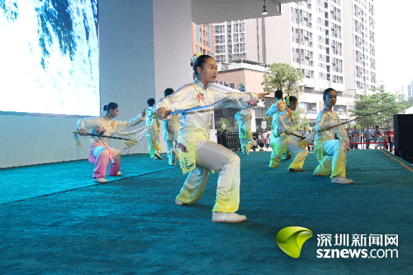 來自前海小學(xué)、西麗二中和大沖學(xué)校的老師們,也在臺(tái)上一展身手,他們出拳和刀棍展示更加虎虎有聲,氣勢如虹,英姿颯爽,霸氣十足。