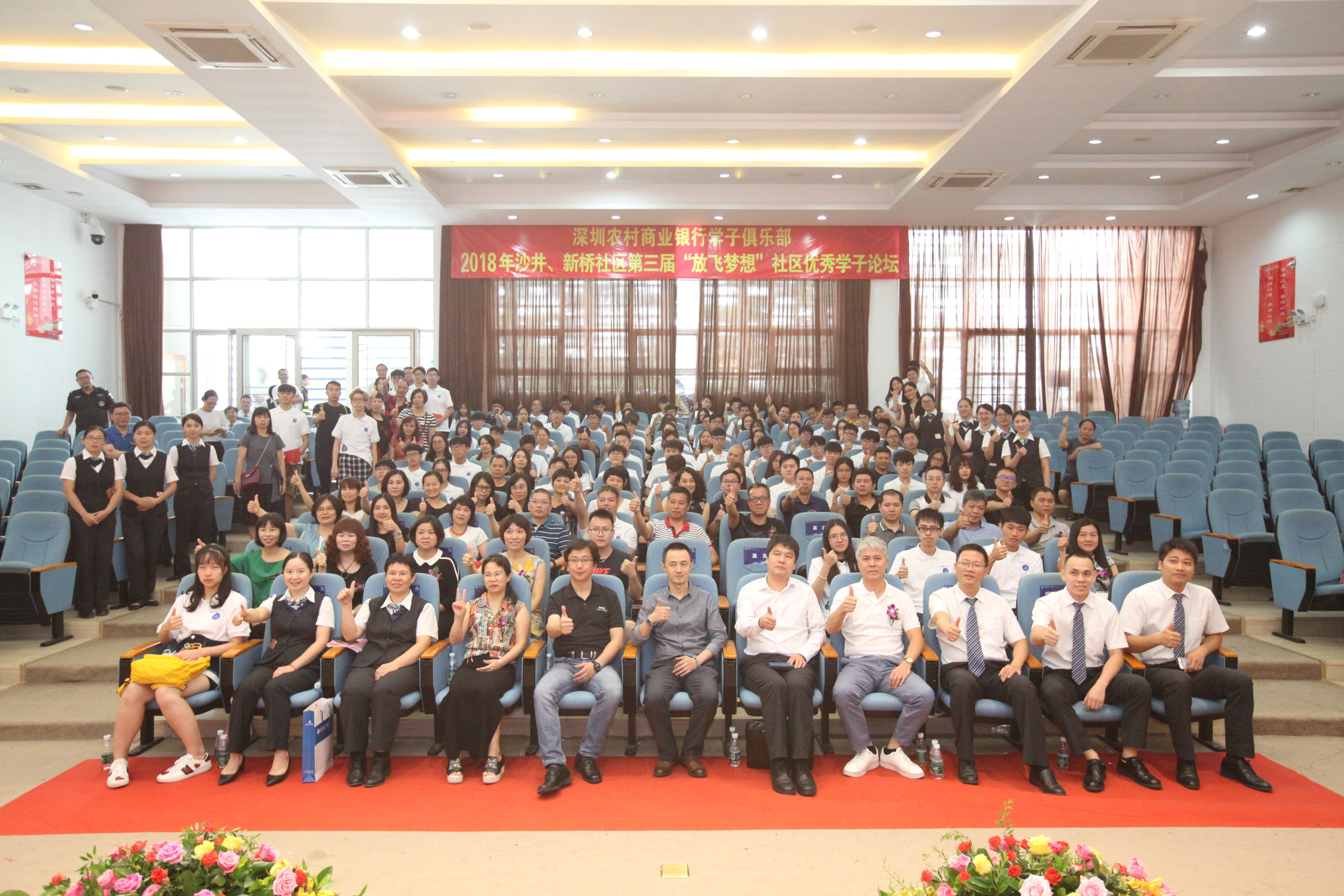 深圳農(nóng)商行相關領導、沙井街道黨工委委員、組織人事部部長辛文明、新橋街道辦事處副主任江日坤,寶安教育局第4學區(qū)教育管理辦公室主任曾偉崇,沙井中學副校長劉建梅,新橋商會會長曾劍琨,沙井商會執(zhí)行會長陳允權,沙井、新橋街道27個社區(qū)股份公司董事長及代表、99位被高等院校錄取的本屆高考學子以及部分學生家長,70名沙井中學新高三學生,共計約300人出席了本次活動論壇。