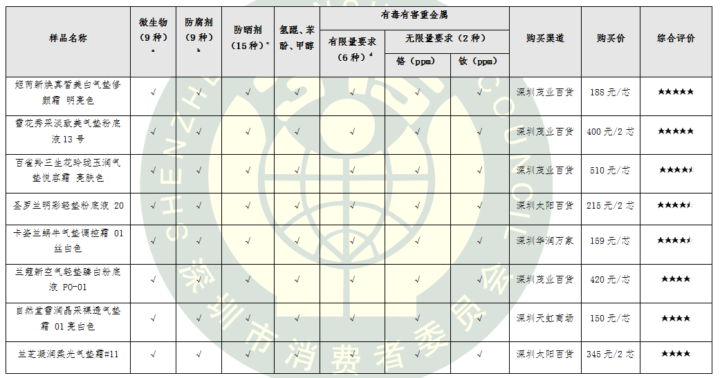 為給消費(fèi)者提供科學(xué)合理的消費(fèi)指引,深圳市消費(fèi)者委員會聯(lián)合福田區(qū)消費(fèi)者委員會、寶安區(qū)消費(fèi)者委員會委托深圳市品質(zhì)消費(fèi)研究院開展氣墊粉底比較試驗。本次比較試驗委托第三方權(quán)威檢測機(jī)構(gòu)進(jìn)行檢測,對國內(nèi)外8個知名品牌氣墊粉底的安全性和感官性進(jìn)行了比拼。