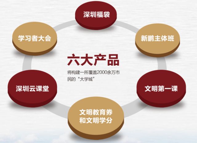 我們以構(gòu)建一個覆蓋2000余萬市民的終身學習平臺、將深圳市打造成一個培養(yǎng)現(xiàn)代文明市民的“大學城”為愿景,推出新版深圳福袋、新鵬主體班、文明第一課、深圳云課堂、學習者大會等產(chǎn)品。