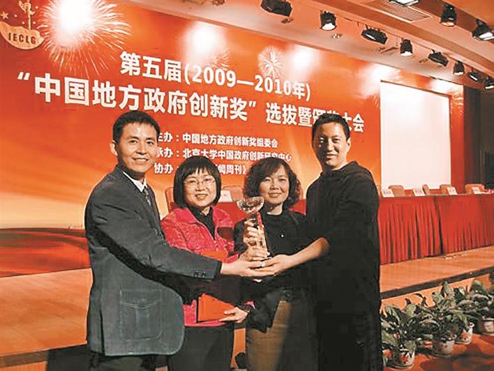 2010年1月17日,深圳社會組織改革榮獲第五屆“中國地方政府創(chuàng)新獎”,馬宏(左二)等領(lǐng)取獎杯。