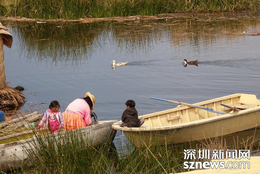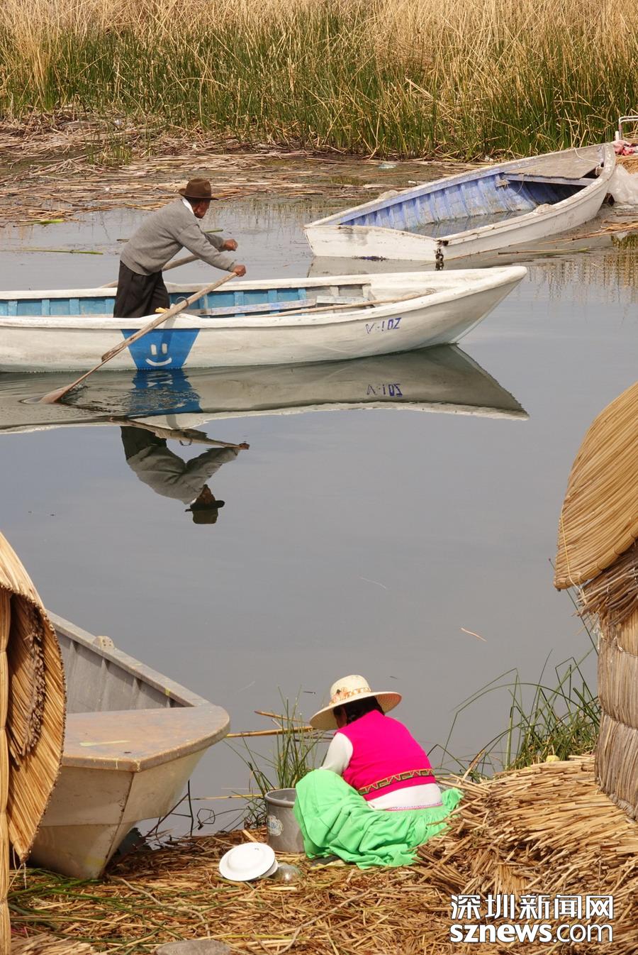 早至遠(yuǎn)古,印第安人用香蒲編成小舟或筏子,下湖捕魚(yú)。湖中還有幾十個(gè)印第安人烏羅族居住的“漂浮島”,它們是用香蒲在湖面堆集而成的人工島,島上的居民都以捕魚(yú)為生。李仁奇 攝
