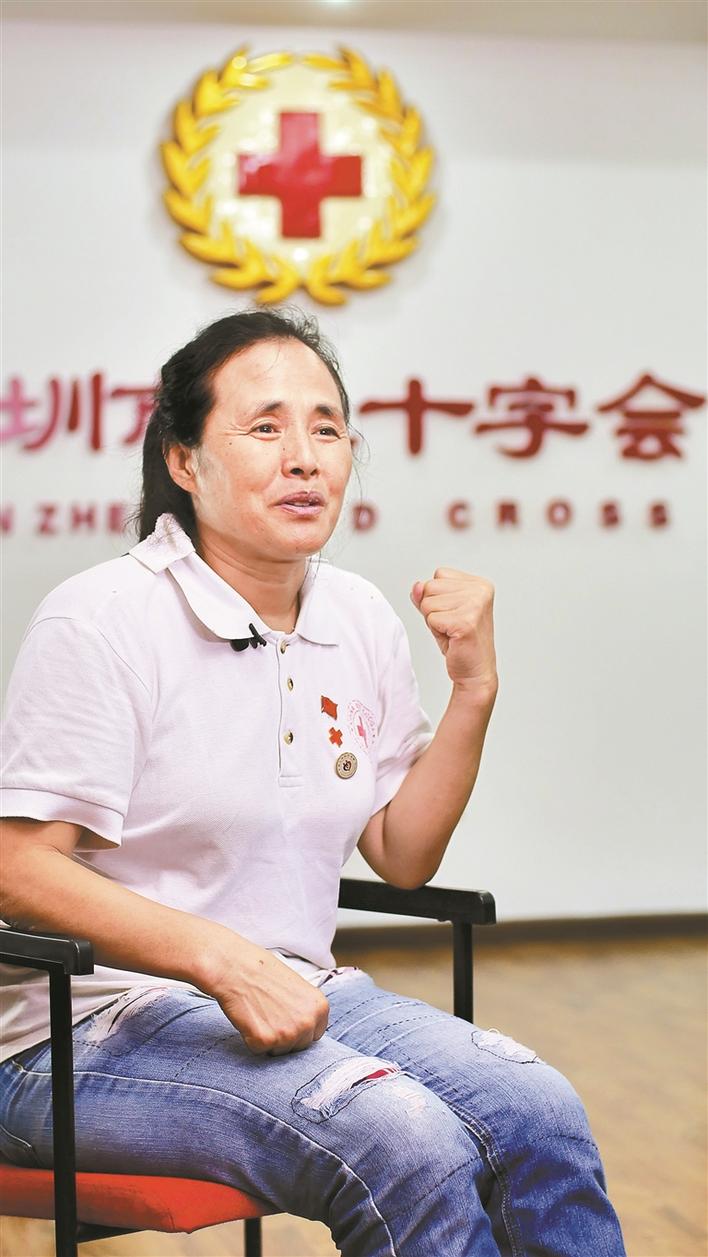 1997年,我從濟(jì)南市商河縣的農(nóng)村來到深圳,幫妹妹照看孩子。一次偶然的機(jī)會(huì),我看到路邊一輛無償獻(xiàn)血車,車上寫著缺A、B、O型血,這讓我想起了小時(shí)候看過的小人書,白求恩大夫獻(xiàn)出300毫升鮮血挽救了八路軍傷員的生命,心想現(xiàn)在自己也有機(jī)會(huì)通過獻(xiàn)血去救助危重的病人,真的太好了。漸漸地,我成了深圳市紅十字會(huì)的“??汀?,也成了深圳市紅十字會(huì)的志愿者。至今,我志愿服務(wù)時(shí)間近6萬小時(shí),無償獻(xiàn)血316次。