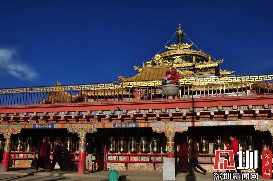 谷底和山梁上分布著幾座寺廟和佛堂,裝飾考究,金碧輝煌。李仁奇攝