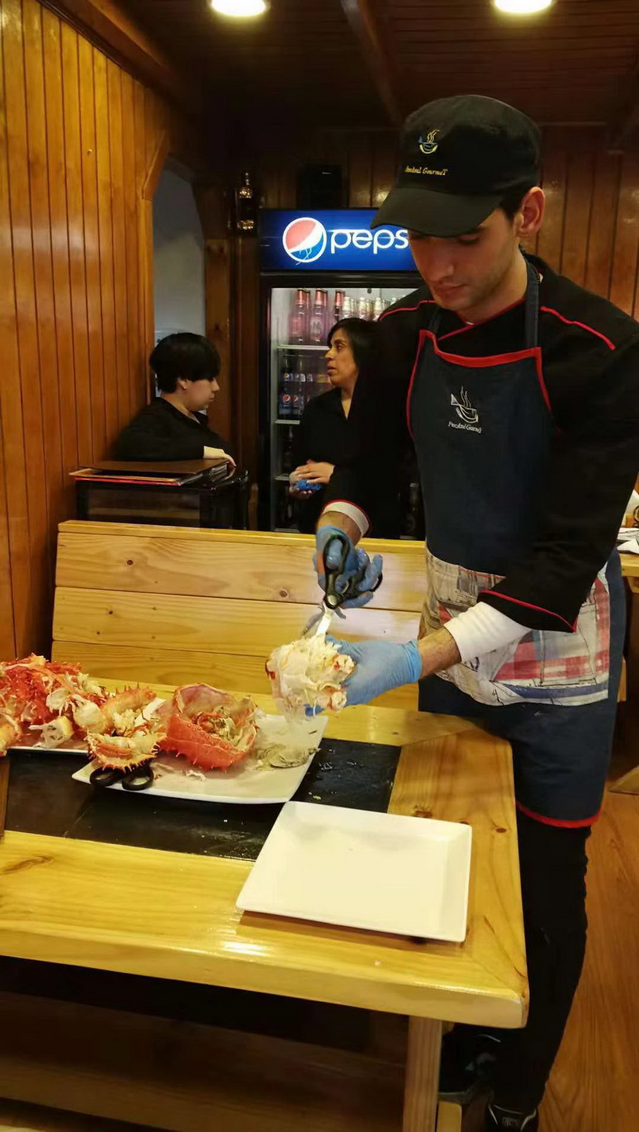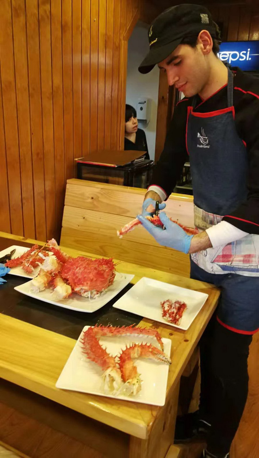 蜘蛛蟹(又名皇帝蟹)只產(chǎn)于南北兩極冰冷的海洋中,大個的重量可達5公斤以上。資深旅游者大多知道美國阿拉斯加的蜘蛛蟹是當(dāng)?shù)靥禺a(chǎn)美味,但很多人并不了解智利、阿根廷接近南極洲的海域有比阿拉斯加蜘蛛蟹更大、味道更好、價格更低的同類海產(chǎn)品。李仁奇攝