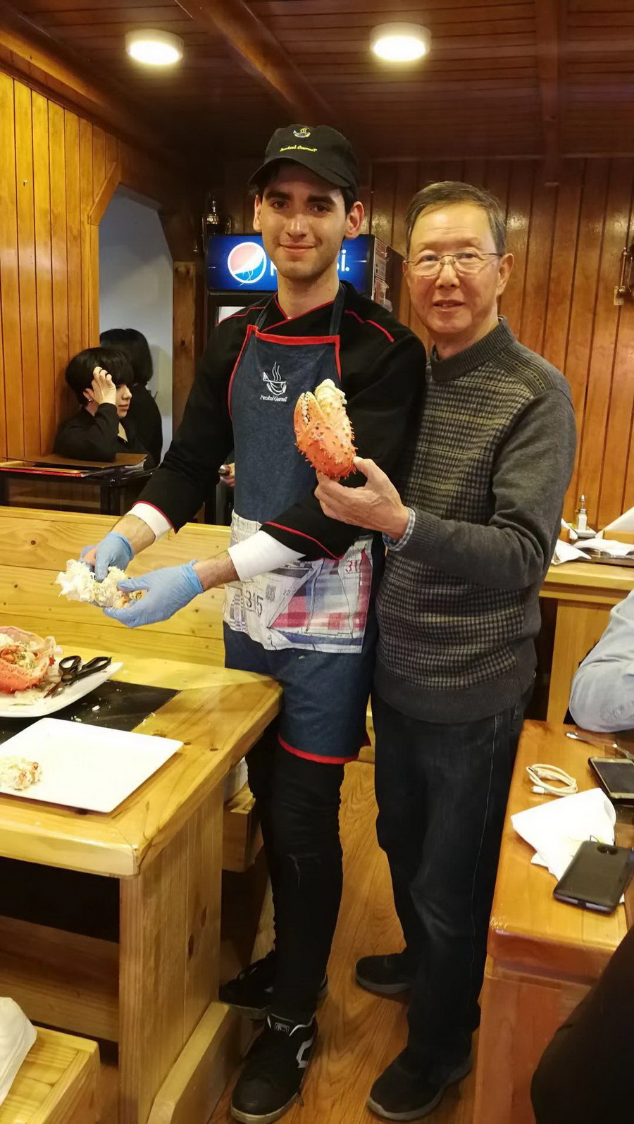 網(wǎng)友經(jīng)當(dāng)?shù)芈眯猩绲耐扑]到一家蜘蛛蟹貿(mào)易公司參觀并在其附設(shè)的餐廳品嘗了海鮮大餐。李仁奇攝