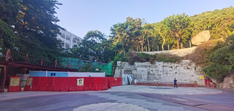 其次,從今年7月起,在二層架高平臺(tái)之上的山坡綠地,存在樹木砍伐和綠地草坪遭毀壞的情況,且有挖掘機(jī)開入并停泊,而現(xiàn)場(chǎng)也沒有任何工程信息和告示。
