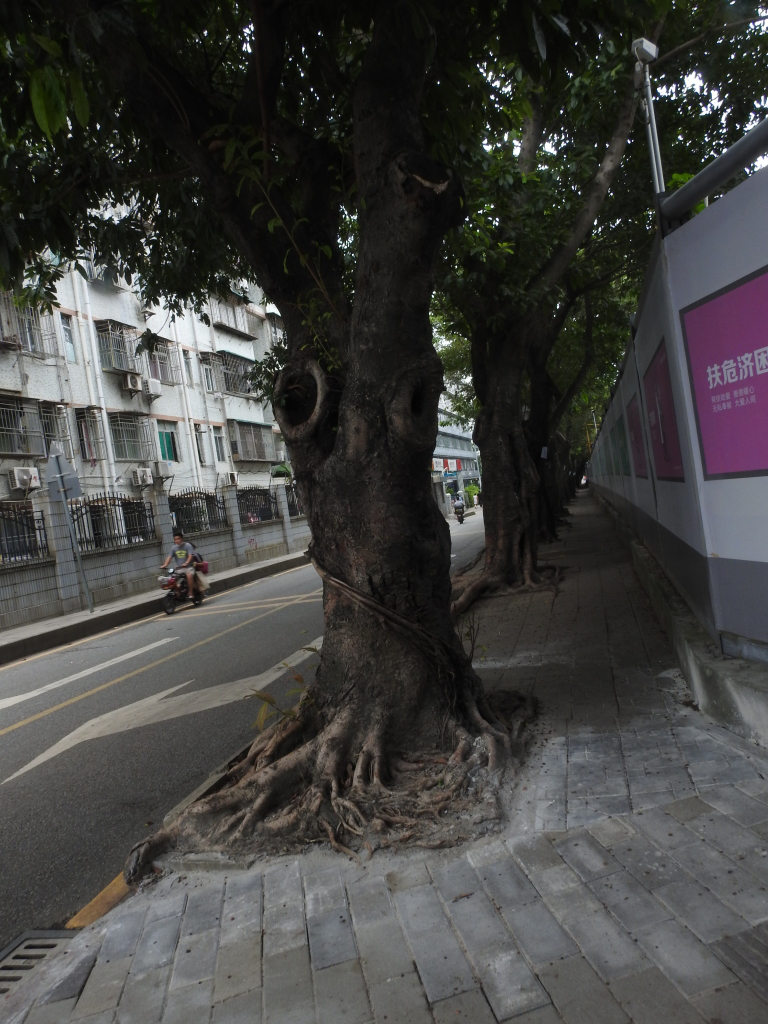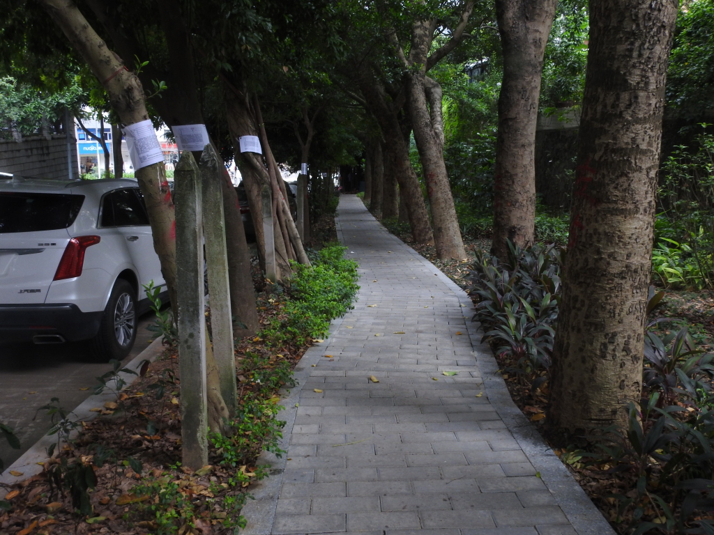 9月6日,有網(wǎng)民在深圳論壇發(fā)帖《深圳版的指鹿為馬,蓮塘為了砍樹,不是榕樹硬說是榕樹》反映,稱“百世路邊大樹貼上一張張紙條,大意是這些榕樹根系發(fā)達,破壞人行道、路牙和機動車路面,為了精準提升,所以要移除砍掉!仔細看看,這些行道樹根本就不是榕樹,而且沒有損壞道路路面,至于路邊的人行道,是這兩年才修建有的,之前屬于路邊綠化帶,種花草?!笔嗄陙頉]有一棵樹被臺風吹倒!該網(wǎng)友稱影響該路段市民出行另有原因,“至于市民被迫在機動車道上行走,那是道路的兩邊停滿了機動車,很多都是僵尸車,沒人管。”