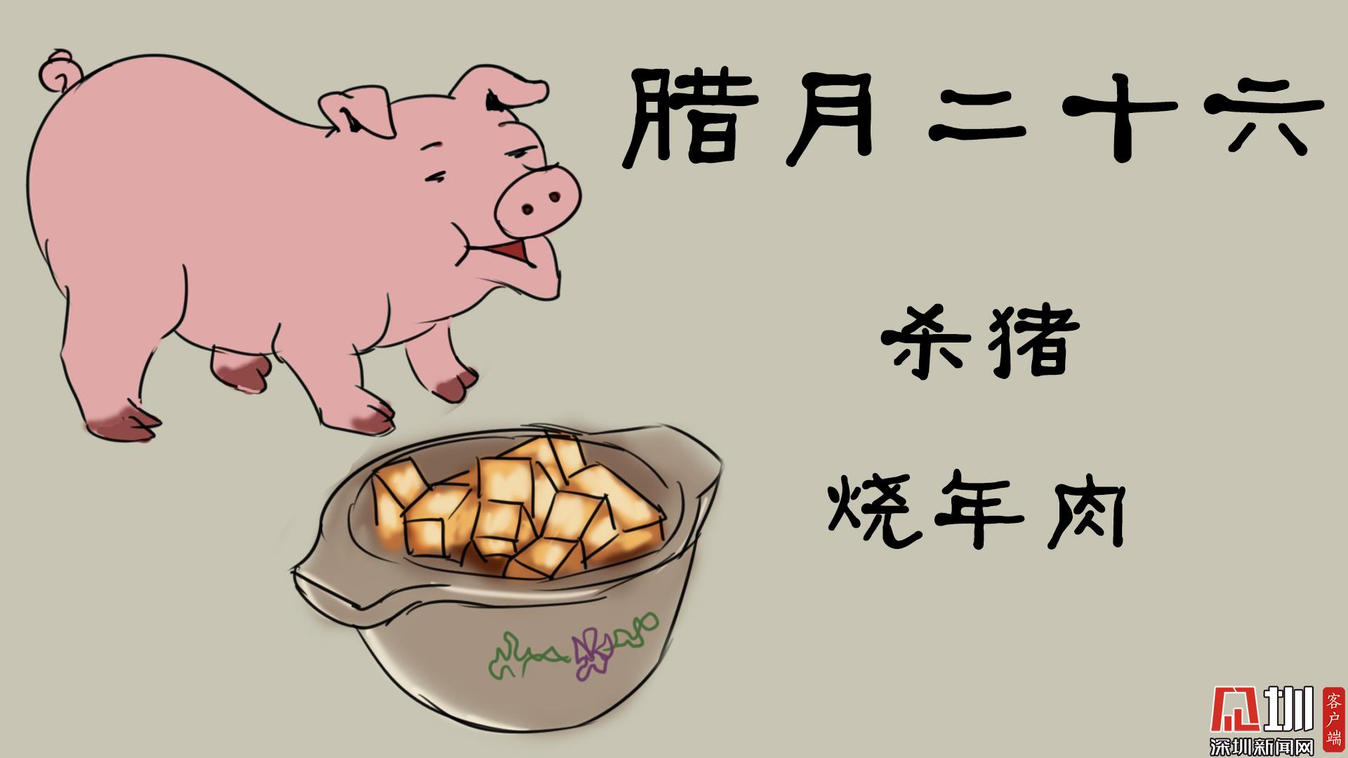 臘月二十六要?dú)⒇i燒年肉,開始置辦年貨。殺豬,是指殺自己家養(yǎng)的豬;割肉是指沒養(yǎng)豬的人到集市上去買肉。以前經(jīng)濟(jì)不發(fā)達(dá),人們往往在年節(jié)時(shí)才能吃到肉,故稱為“年肉”。
