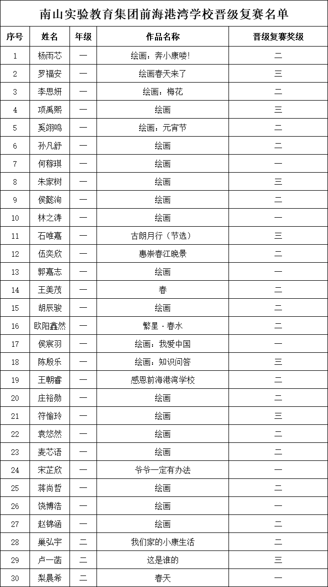 自2021年1月,活動征稿啟動以來,獲得了深圳市廣大中小學生、教師、文學愛好者的熱烈響應積極參與,吸引了深圳百余所學校的上萬人關注報名。現(xiàn)公布南山實驗教育集團前海港灣學校校園專場晉級復賽名單如下:
