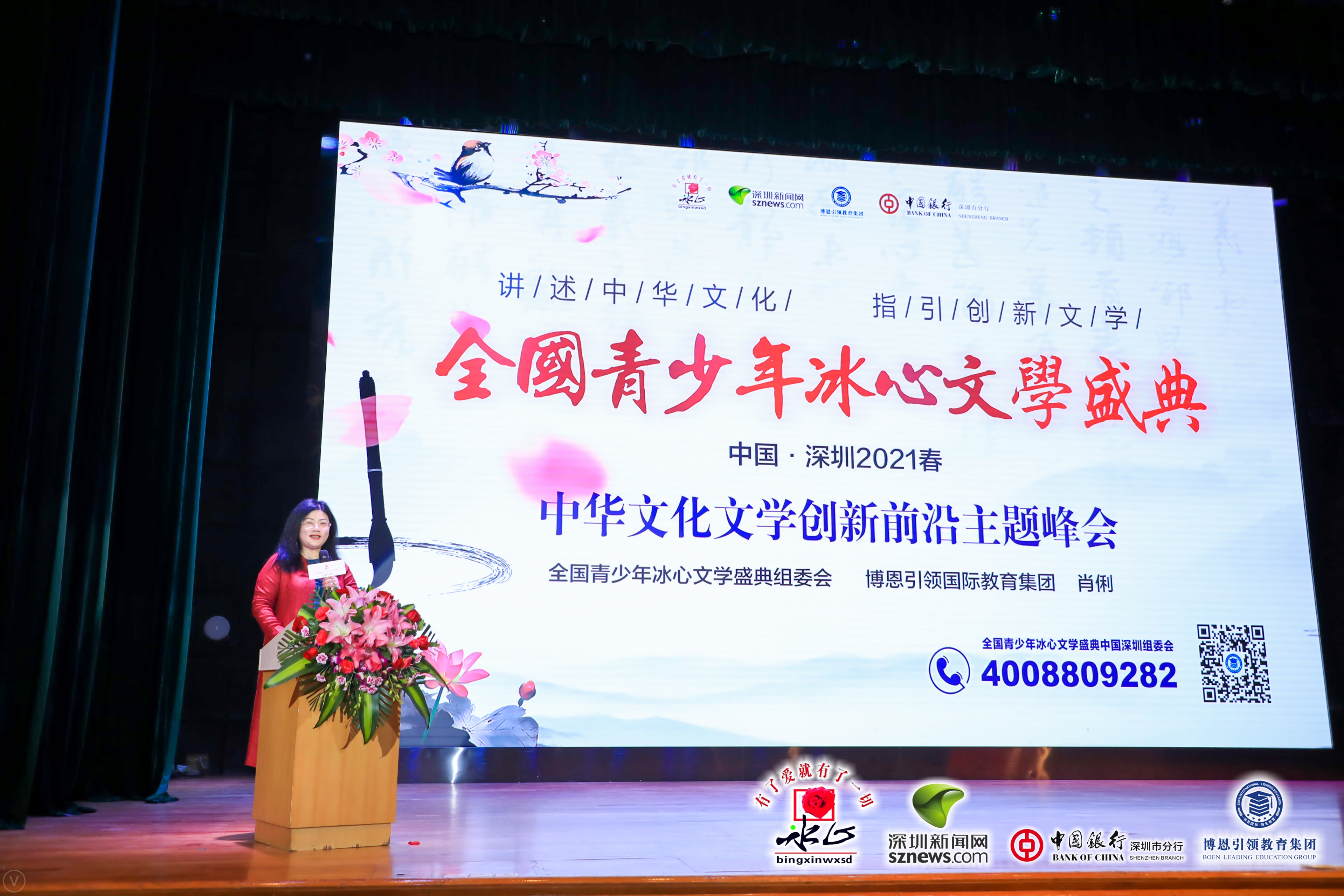 全國青少年冰心文學(xué)盛典中國·深圳組委會、博恩引領(lǐng)教育集團負責(zé)人肖俐致辭