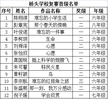 自2021年1月,活動(dòng)征稿啟動(dòng)以來,獲得了深圳市廣大中小學(xué)生、教師、文學(xué)愛好者的熱烈響應(yīng)積極參與,吸引了深圳百余所學(xué)校的上萬人關(guān)注報(bào)名?,F(xiàn)公布寶安區(qū)橋頭學(xué)校第二批晉級(jí)復(fù)賽名單如下: