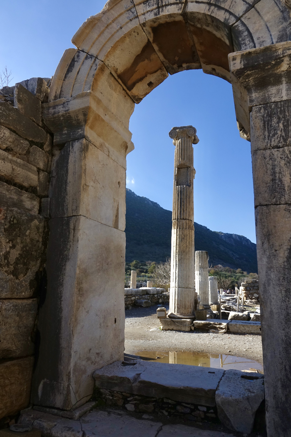 立柱背后是市政廳遺址。經(jīng)過幾百年的地貌變遷,以弗所的入??跐u漸被淤泥填塞,它賴以生存的海洋貿(mào)易遂告終結(jié),加上地中海沿岸頻發(fā)的地震,以弗所難逃被遺棄的噩運(yùn),這座新約《圣經(jīng)》中出現(xiàn)過的城市,最終淪為一片大理石廢墟。李仁奇 攝
