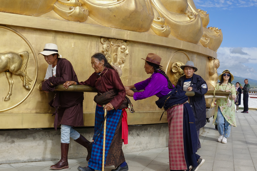 寧瑪寺大藏經(jīng)轉(zhuǎn)經(jīng)筒以筒身高度35.81米,筒身直徑12.43米的數(shù)據(jù)打破了青海貴德“中華福運輪”保持的吉尼斯世界紀(jì)錄,成為世界最大的轉(zhuǎn)經(jīng)筒。李仁奇 攝