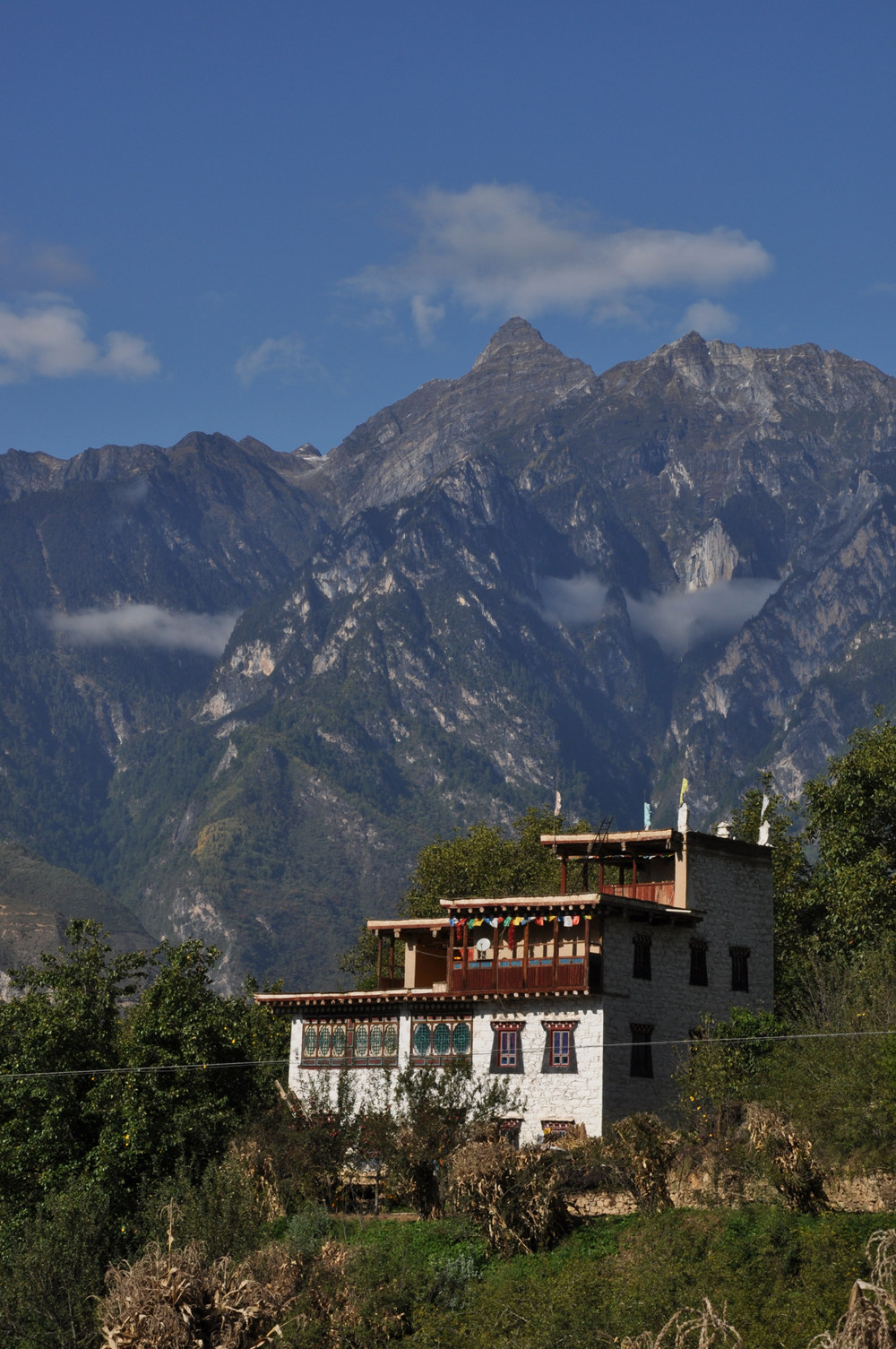 嘉絨藏民多居住在河谷或半山向陽(yáng)的寨子里。自古以來(lái),他們建就地取材建房,用黃泥作粘合劑,以石塊砌墻,以巨木為梁,橫搭雜木,蓋土于上,堅(jiān)固不漏。李仁奇 攝