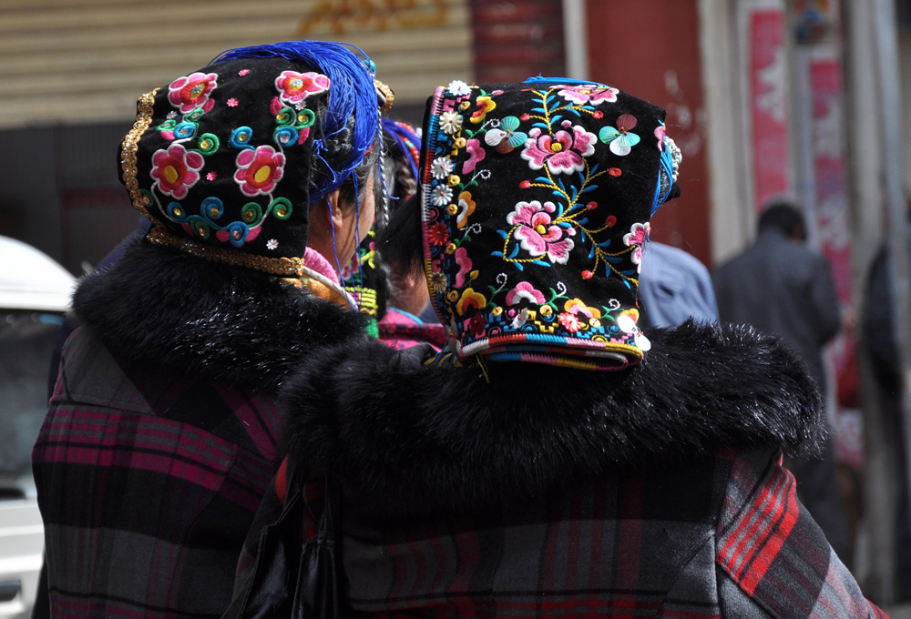 嘉絨人多彩的頭飾(背面)。李仁奇 攝