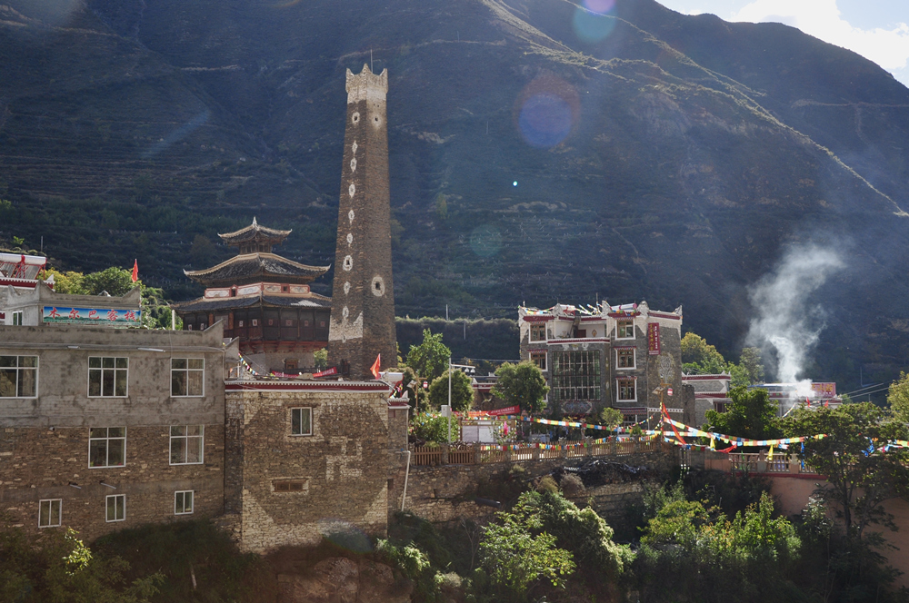 古碉為片石或石塊夾泥砌成,棱角筆直,墻面光滑,下寬上窄,一般高20余米,最高達(dá)50米,內(nèi)建樓層十余層至二十余層,每層可容納10余人。李仁奇 攝
