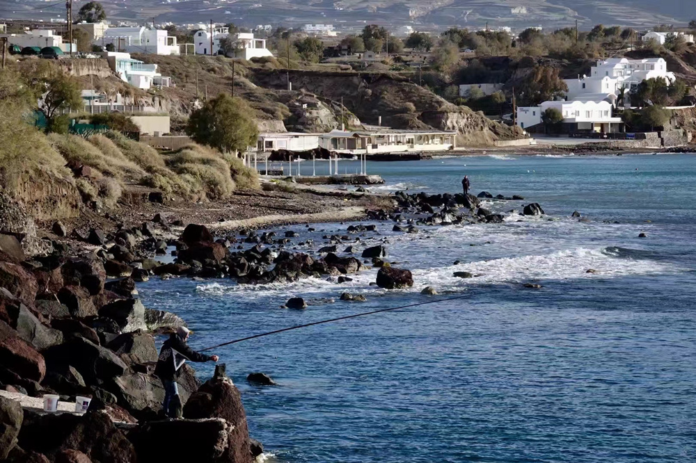 圣托里尼由3個小島組成,其中兩個島有人居住,中間的1個是沉睡的火山島。歷史上,這里的火山曾多次爆發(fā),以公元前1500年的一次最為劇烈。李仁奇 攝