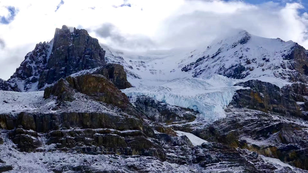 冰原的融雪由此分別流向太平洋、大西洋、北極海,實際上是由于重力擠壓從冰原底部向坡地滑動的一條雪道。李仁奇 攝