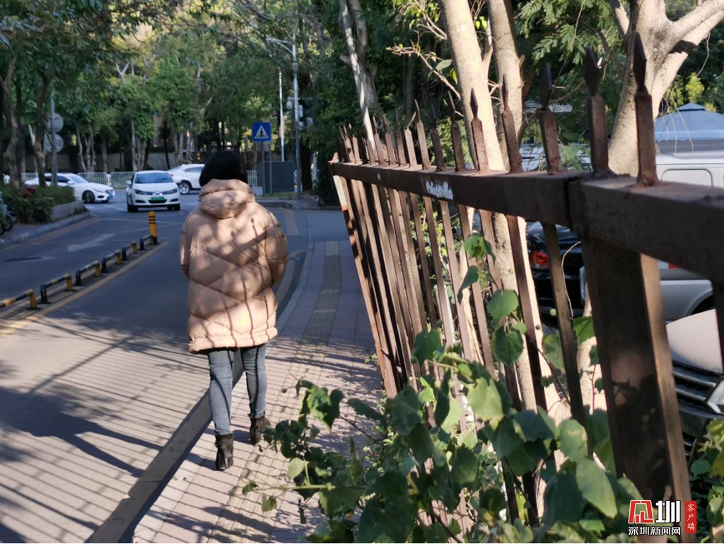 1月12日下午4時30分,正是小學放學時間。記者在竹香一路看到,過往接送孩子的家長絡繹不絕。由于竹香一路一側(cè)人行道通行距離不足一米,且靠近深南汽配城的鐵柵欄”張牙舞爪“,搖搖欲墜,向外傾斜擠壓了通行空間,不少家長讓孩子走在人行道上,自己則是走在車行道上,與身邊的汽車擦肩而過。