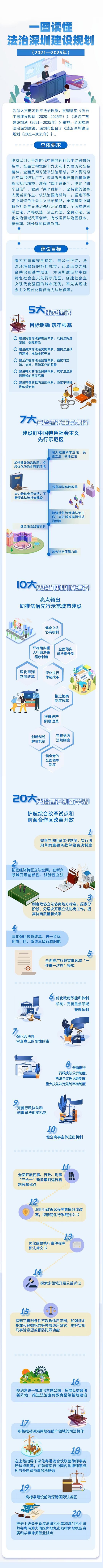 讀特客戶端·深圳新聞網(wǎng)2022年7月28日訊(記者 翁任瑩)建設5大體系,在7大法治建設重點領(lǐng)域發(fā)力,推出10大法治機制制度建設,推出20大法治建設創(chuàng)新舉措……為打造安全穩(wěn)定、公平正義、法治環(huán)境最好的標桿城市,深圳打算怎么做?一張長圖了解最近出臺的《法治深圳建設規(guī)劃2021-2025年》。